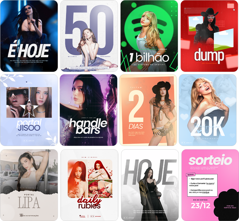 *Kit Visual contém: Foto de Perfil, Capa p/ Destaques (até 10), Post Fixado (1), Fundo p/ Storys (1), Base de Notícias (1), Logo, Paleta de Cores e Tipográfia.OBS: Não altero nada no pacote. O valor e o preço são FIXOS.